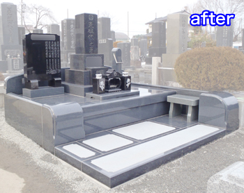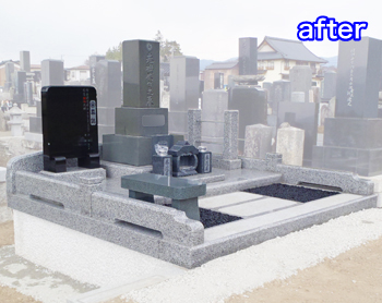 安全を考慮して、階段を上がらなくても墓参りができるよう、お墓のバリアフリー化をお勧めしております。将来のお墓参りも安心です。階段部分のみのリフォームも可能です。