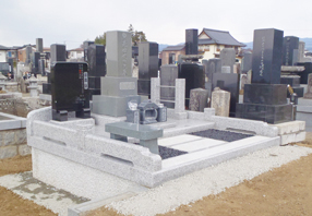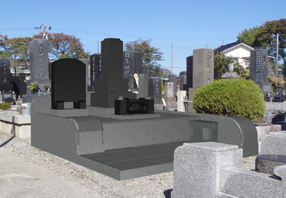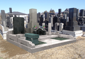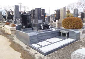小林石材では、墓石専用3次元CADソフトを使用し、墓地計測時に撮影させていただくお客様の墓地の写真に完成イメージを合成することができます。シミュレーションすることで完成後のお墓全体をイメージできるのでとても安心です。